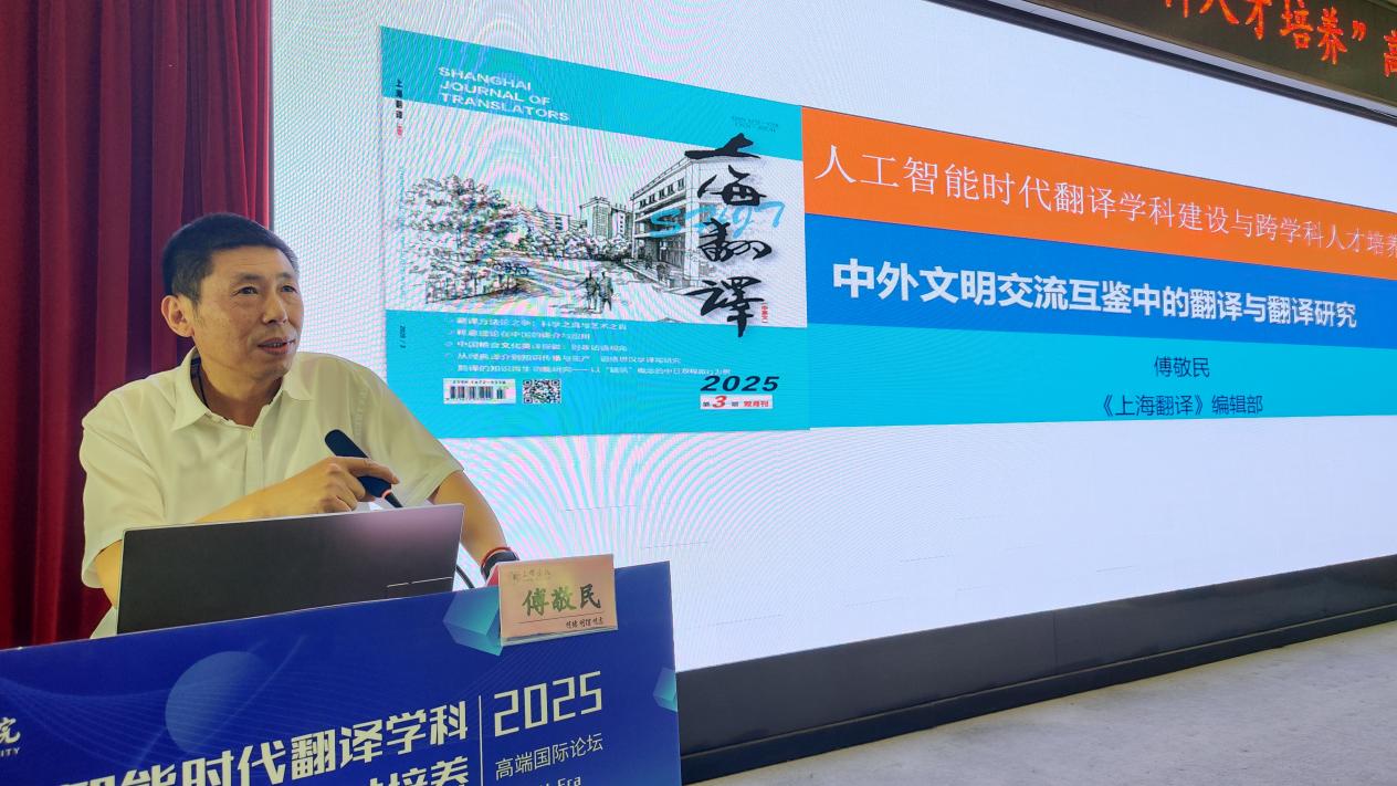 傅敬民教授(上海大學博導,應用翻譯研究中心主任)探討了翻譯在中外文明交流中的作用,強調翻譯不僅是語言轉換,更是文化橋梁,分析了中外文明交流中翻譯面臨的文化差異、語境理解等挑戰,提出翻譯研究應結合跨文化交際需求,推動學科發展。