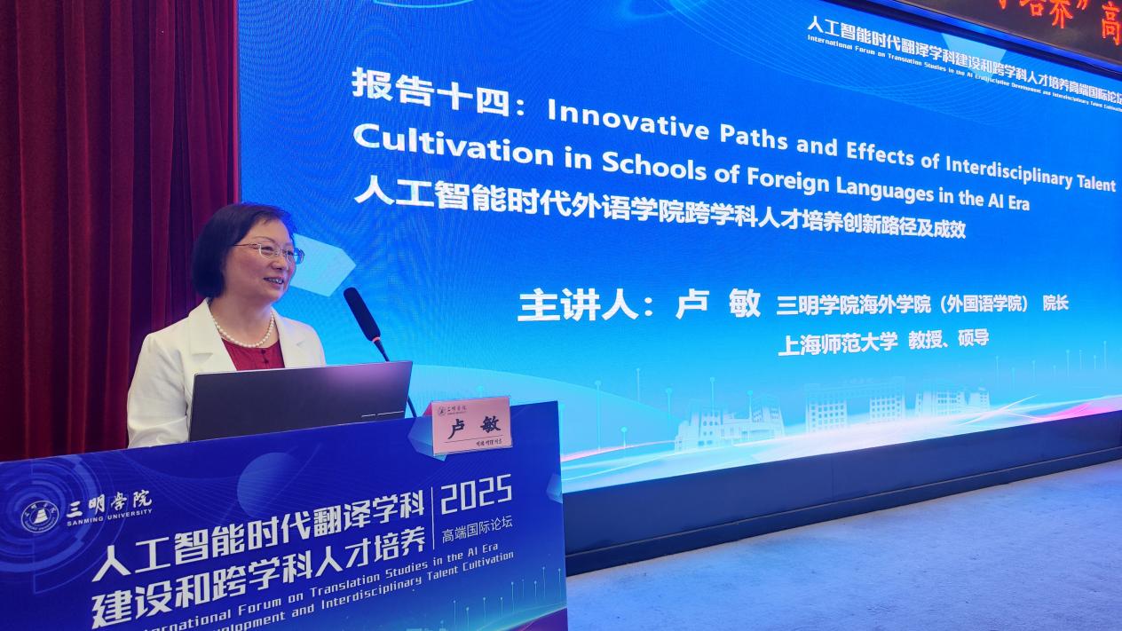 盧敏教授(三明學院海外學院(外國語學院)院長、上海師范大學碩導)以三明學院為例,介紹了學院在跨學科人才培養方面的創新路徑。她指出,通過引進外籍博士、加強科研要求、發展國際學生教育等措施,學院在科研和教學水平上取得了顯著成效。