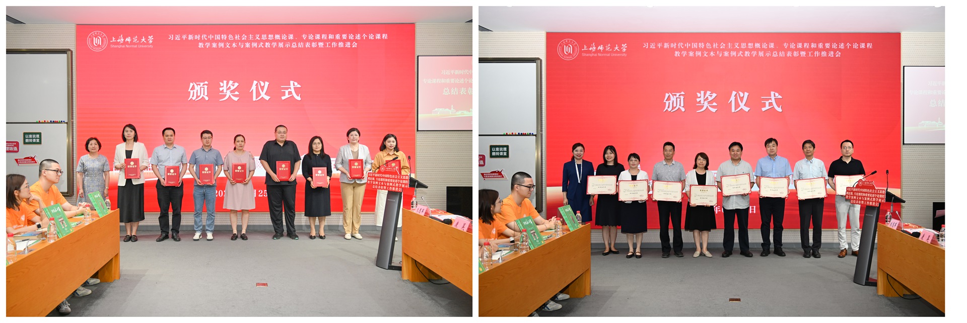 會上,朱惠軍宣讀了表彰決定并進行頒獎儀式。教育學院黃海濤教授領銜的《習近平總書記關于教育的重要論述研究》教學團隊等22支教學團隊榮獲教學案例文本一、二、三等獎和優秀獎。人文學院康昊副教授授課的《習近平文化思想》等22個教學團隊榮獲案例式教學展示一、二、三等獎和優秀獎。馬克思主義學院、人文學院、教育學院、哲學與法政學院、商學院、環境與地理科學學院、上海退役軍人學院、校團委等八家單位榮獲優秀組織獎。