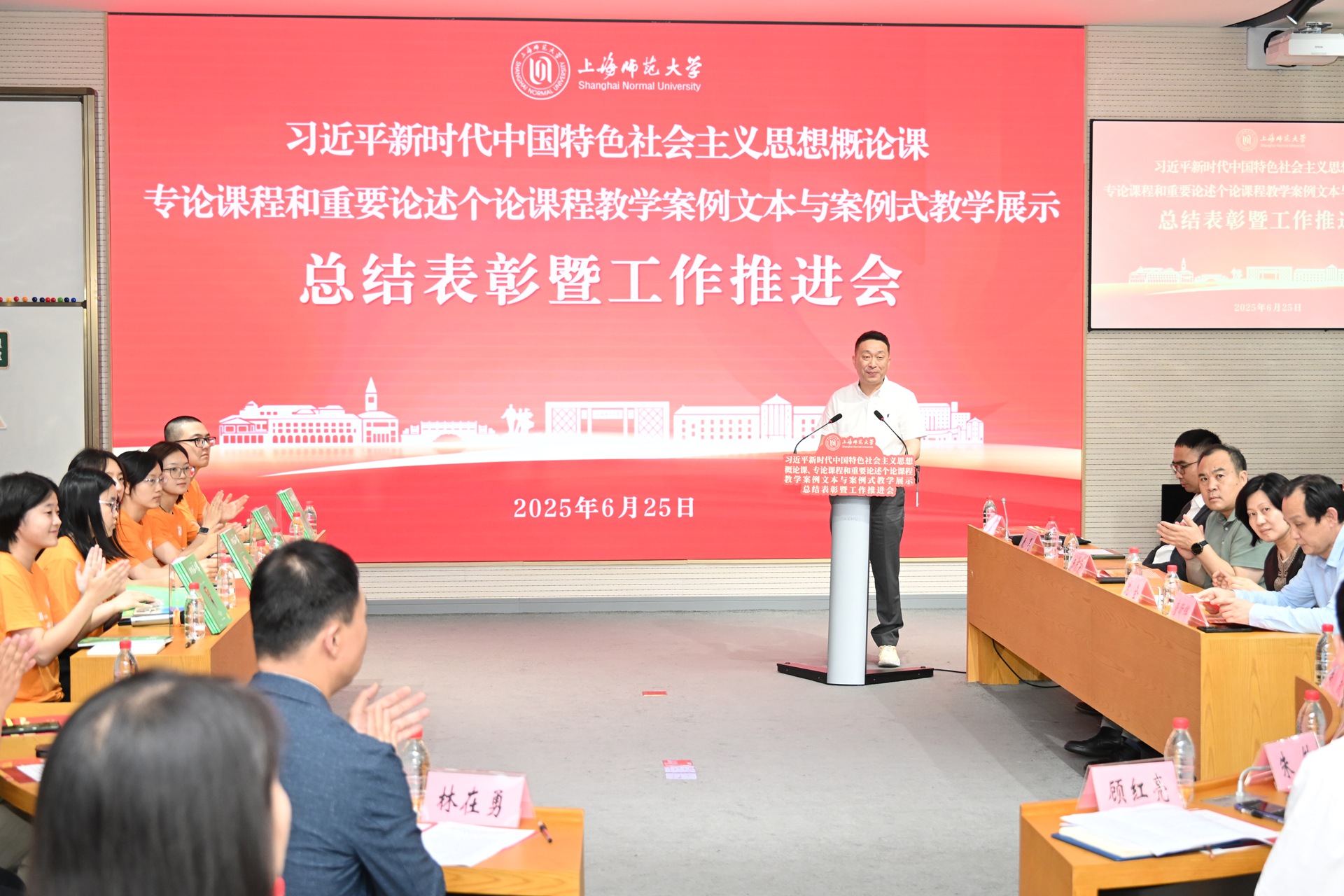 顧紅亮作指導講話,他指出,2025年是教育強國建設全面布局、高位推進之年。上海以案例教學作為深化思政課改革創新的重要抓手,推動思政課教學的體系化改革。上海師范大學舉辦的教學案例文本與案例式教學展示活動,為上海高校創新推進思政課案例教學提供了鮮活范例和實踐樣本。為進一步推廣高質量思政課案例教學,增強育人實效,學校要持續深化思政課課程體系建設,結合學校實際和特色優勢,繼續為思政課改革創新提供方案和智慧。要持續推進思政課案例教學改革,推動實現課程全覆蓋,提升案例開發質量,拓展實踐教學資源,協同聯動打造優質實踐資源和館校合作案例教學精品課。要持續加強思政課教師隊伍建設,以案例教學為主題開展集中研討、集體備課,培育打造案例教學精品課,提升全體教師案例教學質量和水平。