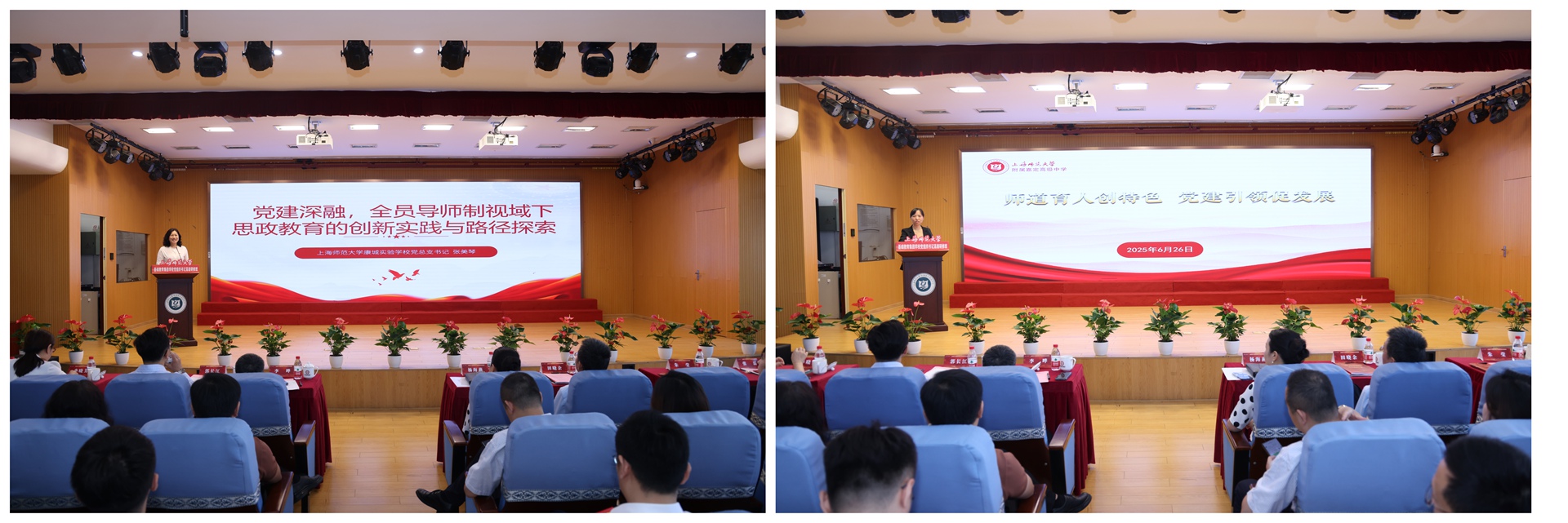 典禮在田曉余熱情洋溢的歡迎辭中拉開(kāi)帷幕。隨后,與會(huì)人員通過(guò)研修班短片回顧了從二月開(kāi)班到六月結(jié)業(yè)的難忘歷程。短片中,15場(chǎng)專題講座、7次學(xué)校考察和交流研討、30余個(gè)學(xué)校黨建與業(yè)務(wù)工作深融案例串聯(lián)起“理論浸潤(rùn)——實(shí)踐淬煉——協(xié)同創(chuàng)新”的完整培養(yǎng)鏈條,生動(dòng)展現(xiàn)了學(xué)員們?cè)谘行薨嗟某砷L(zhǎng)軌跡。校黨校副校長(zhǎng)朱瑩、基礎(chǔ)教育處副處長(zhǎng)李曉芳先后宣讀優(yōu)秀學(xué)員及學(xué)校深融工作優(yōu)秀案例表彰名單,與會(huì)領(lǐng)導(dǎo)和嘉賓為獲獎(jiǎng)學(xué)員和學(xué)校頒獎(jiǎng)。三名學(xué)員代表奚明漪、張蕾、包蓓姹及上海師范大學(xué)康城實(shí)驗(yàn)學(xué)校張美琴、附屬嘉定高級(jí)中學(xué)徐蘭分享了黨建與教育教學(xué)深度融合的創(chuàng)新實(shí)踐。