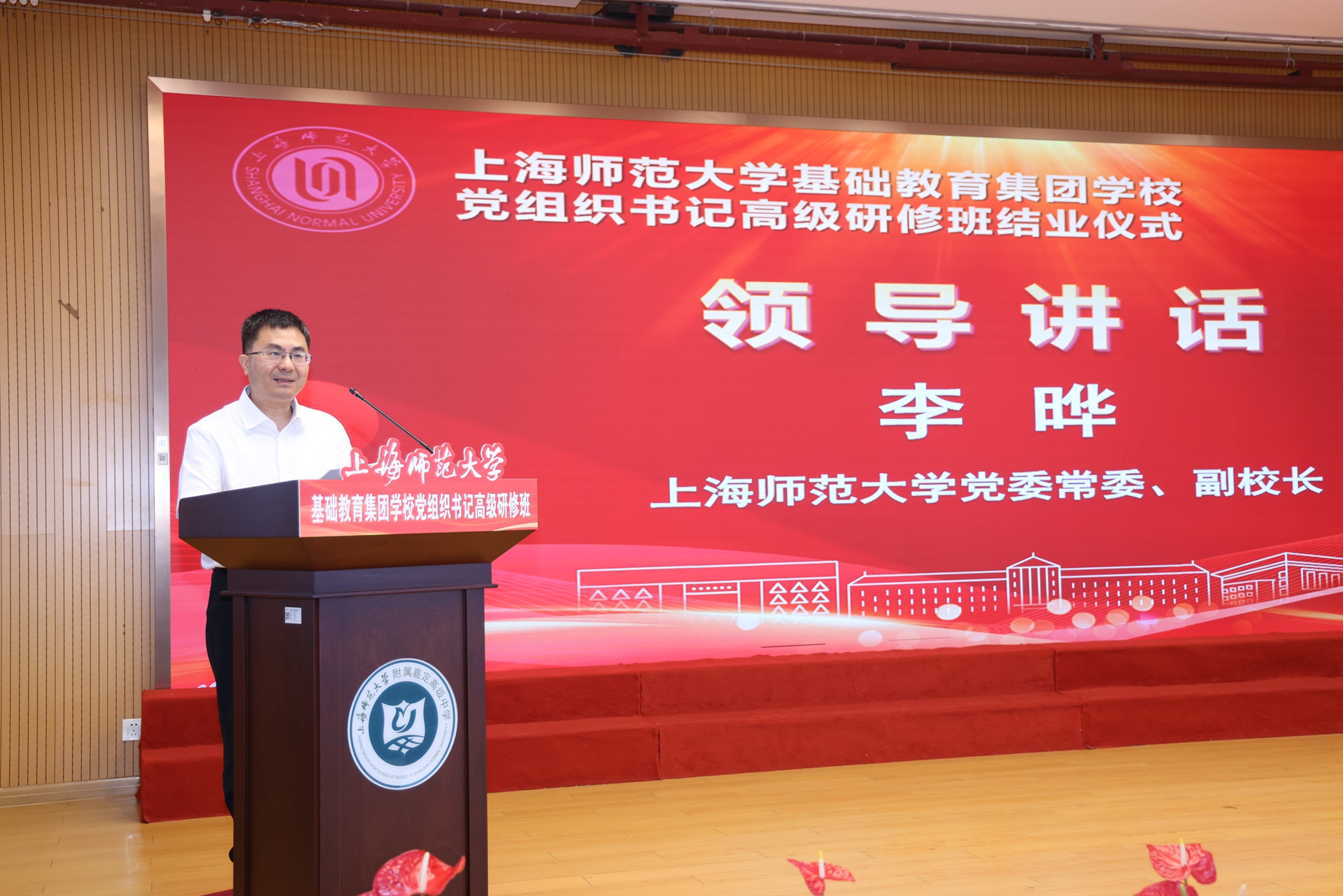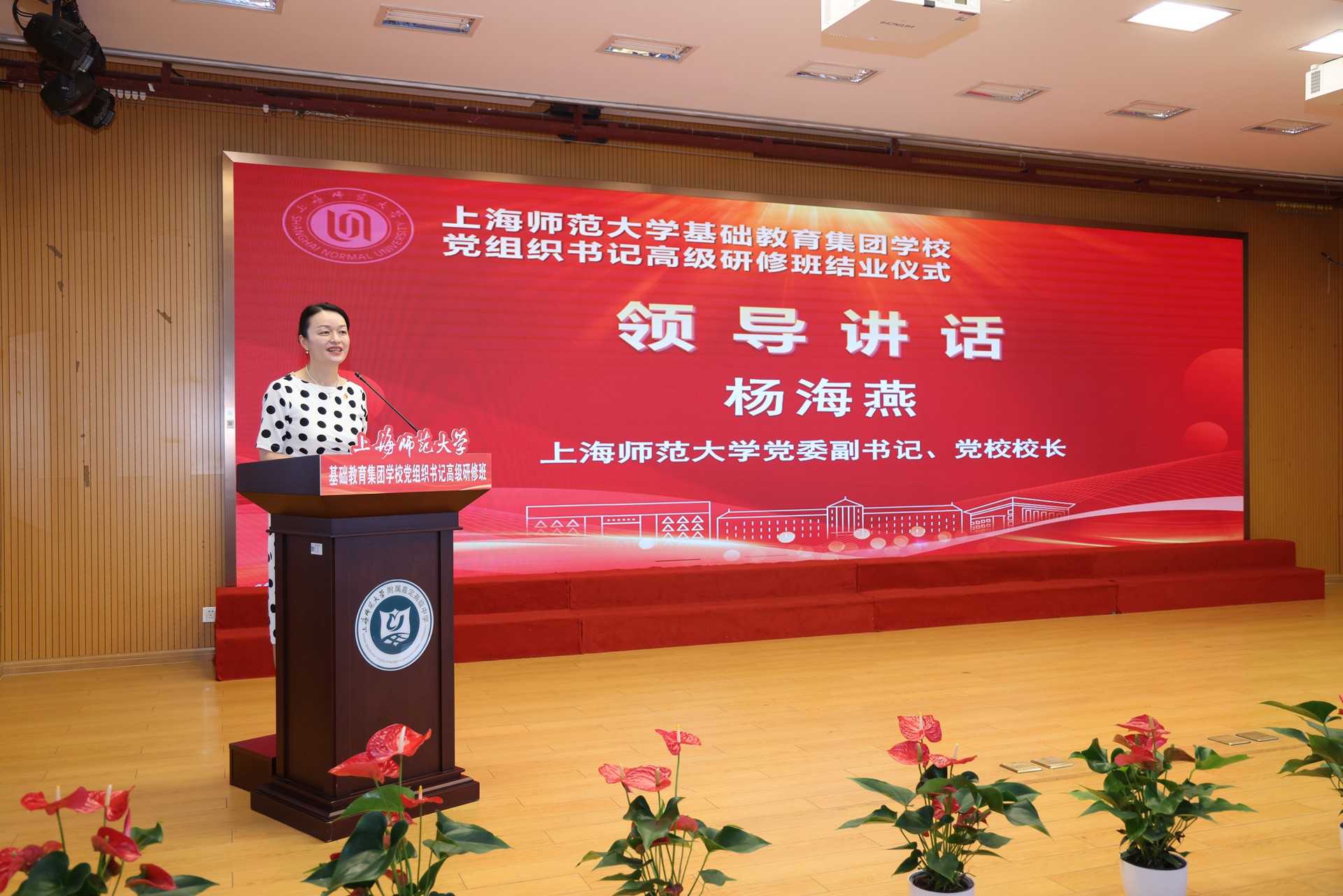 6月26日上午,上海師范大學(xué)基礎(chǔ)教育集團(tuán)學(xué)校黨組織書記高級(jí)研修班結(jié)業(yè)典禮在上海師范大學(xué)附屬嘉定高級(jí)中學(xué)舉行。上海師范大學(xué)黨委副書記、黨校校長(zhǎng)楊海燕,黨委常委、副校長(zhǎng)李曄,上海市嘉定區(qū)教育黨工委書記田曉余,以及校黨校、基礎(chǔ)教育處、基礎(chǔ)教育發(fā)展研究院等負(fù)責(zé)人參加,來(lái)自基礎(chǔ)教育集團(tuán)的42位黨組織書記齊聚一堂,共同見(jiàn)證四個(gè)月研修歷程的豐碩成果。