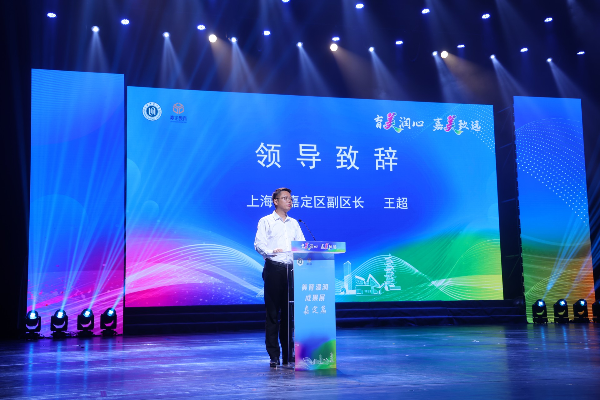 王超在致辭中強調,嘉定區堅持落實立德樹人根本任務,始終把美育作為推動“五育并舉、融合育人”的重要內容,貫徹實施學校美育浸潤行動。本次成果展示活動,既是嘉定區學校美育成果的全面展示,也是集團化辦學成果的創新實踐,目前嘉定區85%以上學校形成了特色美育項目,構建起了“生生有技藝、校校有品牌、區域有標識”的立體化發展格局。