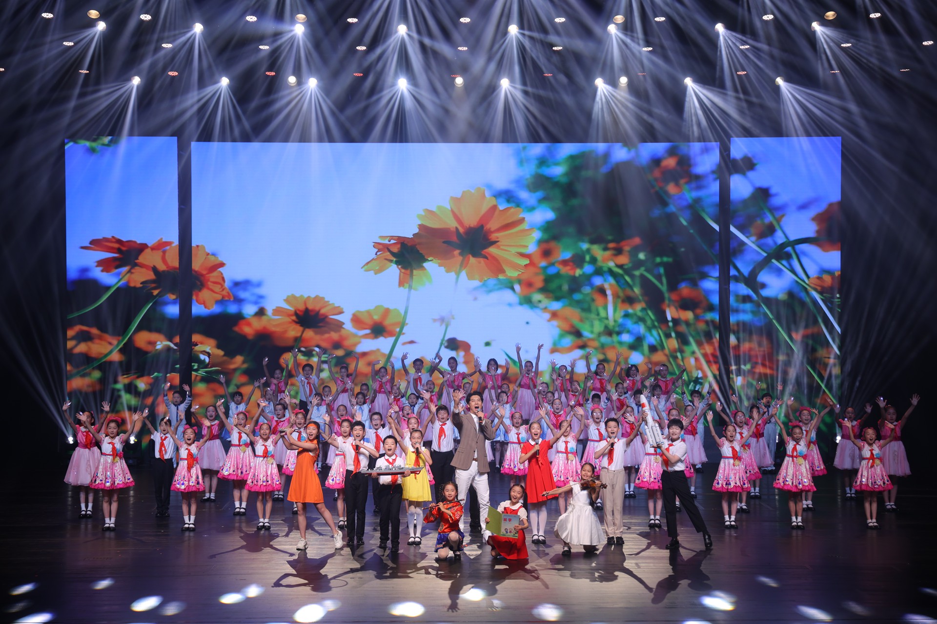 壓軸合唱《把未來點亮》由上海市學生合唱團、中國福利會少年宮小伙伴藝術團合唱團領銜,宋罡老師領唱,帶領上海師大嘉定基礎教育集團五所學校近300人,共同唱響美育浸潤未來的希望之聲。孩子們用手指燈化作星光,匯成潮水般的光芒,照亮了整個舞臺,照亮了全場觀眾的心。