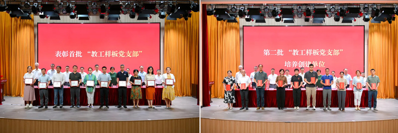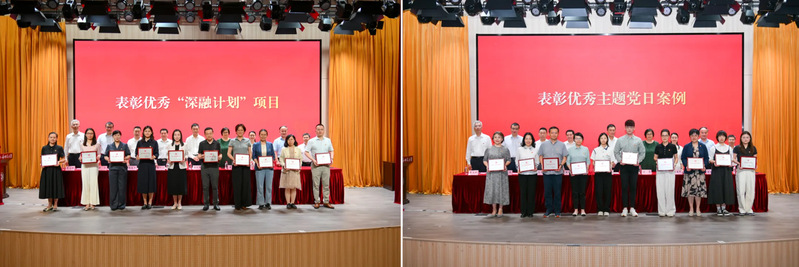 會上,表彰了10個優秀“深融計劃”項目、10個優秀主題黨日案例和32個“黨員先鋒崗”。為第一批結項驗收的10個校樣板黨支部正式授牌,為新一批培育創建的10個校樣板黨支部頒發立項證書。