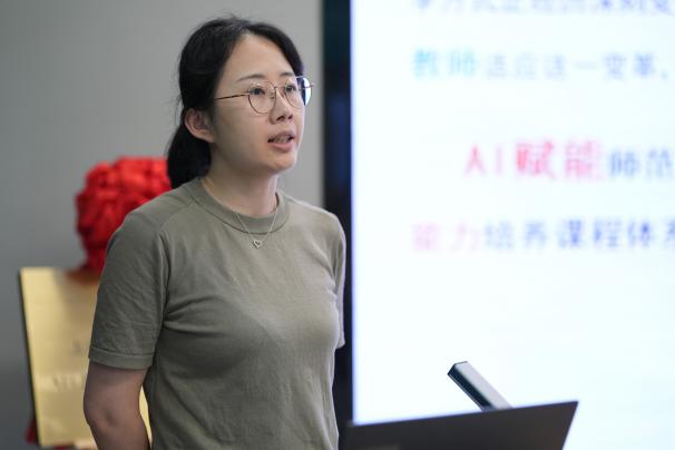 項(xiàng)目負(fù)責(zé)人鮑賢清介紹了培養(yǎng)體系的四門核心課程。《AI輔助教學(xué)設(shè)計(jì)原理與實(shí)踐》聚焦人機(jī)協(xié)同備課策略;《多模態(tài)教學(xué)資源AI生成與應(yīng)用》提升數(shù)字教材制作能力;《AI支持的教學(xué)評(píng)估與反饋》構(gòu)建數(shù)據(jù)驅(qū)動(dòng)的課堂診斷模型;《AI驅(qū)動(dòng)教育創(chuàng)新項(xiàng)目設(shè)計(jì)》培養(yǎng)跨學(xué)科項(xiàng)目創(chuàng)新能力。四門課程將與學(xué)院教師勝任力評(píng)價(jià)體系和聯(lián)盟校真實(shí)課堂深度融合,形成“校內(nèi)學(xué)習(xí)—校外實(shí)訓(xùn)—線上反饋—循環(huán)提升”的完整培養(yǎng)鏈。
