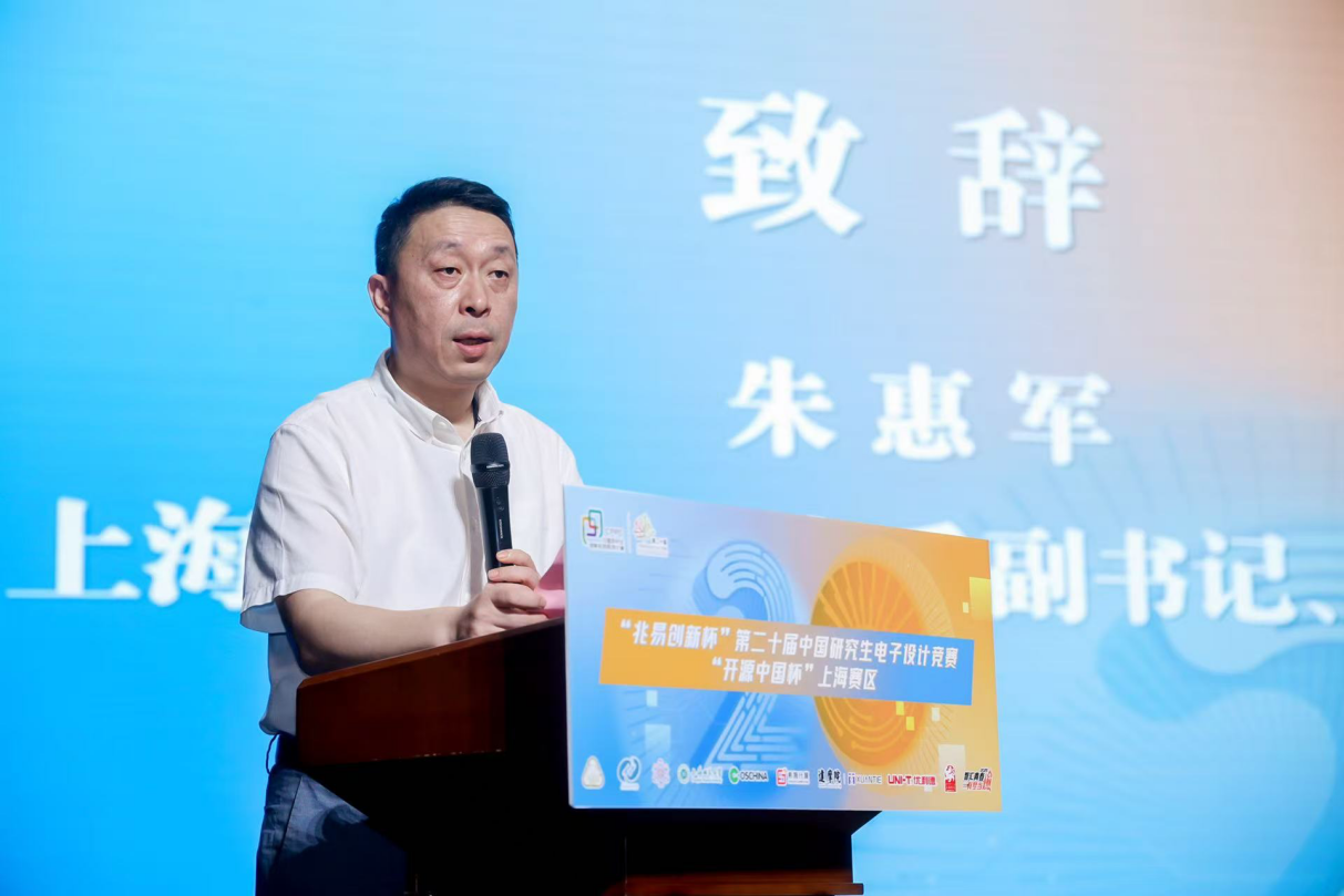 7月4日至6日,“兆易創新杯”第二十屆中國研究生電子設計競賽“開源中國杯”上海賽區在我校舉辦。7月4日,開幕式在徐匯校區東部音樂廳舉行,校黨委副書記、副校長朱惠軍,中國電子學會科普培訓處主任王娟,研電賽全國組委會秘書長、清華大學電子工程系主任汪玉,研電賽全國組委會秘書處、中國電子學會代表楊一平,上海市學生事務中心黨總支書記、主任趙猛,上海市電子學會秘書長、華東師范大學教授劉一清,開源中國AI教育總經理李晨,校研究生工作部部長韓剛,信息與機電工程學院黨委書記陳曉虹,主持工作副院長潘建國共同出席,來自滬上15所高校和科研院所的293支隊伍、1000余名師生共同參與現場評審。開幕式由信息與機電工程學院副院長魏爽主持。