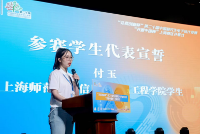 魏爽作上海賽區籌備情況介紹。為保障賽事質量,在學校黨委領導下,校研究生院、研究生工作部指導和支持下,我校信機學院成立了13個專項工作小組,共招募了100名學生志愿者和20名教師志愿者參與三天的賽事服務。上海交通大學殳國華教授作為評審專家代表進行宣誓,上海師范大學信息與機電工程學院研究生付玉作為參賽學生代表進行宣誓。中國電子學會、研電賽全國組委會、上海市學生事務中心、上海市電子學會、開源中國、上海師范大學等相關領導共同啟動上海賽區開幕式。