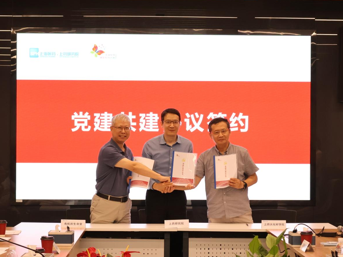 為深入貫徹落實黨的二十屆三中全會精神以及教育強國戰略部署,7月2日上午,化學與材料科學學院化學第一教師黨支部(以下簡稱“上師大化材學院化教第一黨支部”)在學院黨委書記葉蔚藍帶領下,到訪上海醫藥集團股份有限公司中央研究院(以下簡稱“上藥研究院”),并與中國科學院上海有機化學研究所(以下簡稱“上海有機所”)生命過程小分子調控全國重點實驗室第一黨支部、上藥研究院黨委聯合舉辦了黨建共建活動。三方以“黨建+科研”為紐帶,通過組織聯建、資源聯享、項目聯攻,共同探索生物醫藥、生物化學領域協同創新機制。會議由上藥研究院院長、交大藥學院院長、全重實驗室副主任張翱主持,來自三家單位的40余名黨員代表及科研骨干參會。