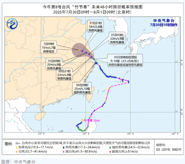 凌晨4時(shí)30分,臺(tái)風(fēng)“竹節(jié)草”中心在浙江省舟山市朱家尖島登陸,登陸時(shí)強(qiáng)度為熱帶風(fēng)暴級(jí);16時(shí)40分前后,“竹節(jié)草”于上海市奉賢區(qū)沿海再次登陸,成為1949年以來登陸上海的第13個(gè)臺(tái)風(fēng)。