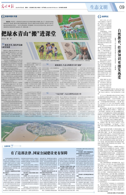 如今,越來越多學校立足當地生態文明建設實際、貼近百姓生活,進一步培養了學生的生態意識和責任感。通過實地探秘、角色扮演、碳積分激勵等多樣化方式,引發學生情感共鳴并激發他們付諸行動,實現生態文明教育有效“破圈”。