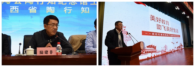 陸建非在開幕式上發(fā)表講話。陸建非感謝中陶會(huì)對高工委工作的關(guān)心與支持,同時(shí)感謝太原師范學(xué)院第二次承辦年會(huì)。陸建非回顧并肯定高工委在學(xué)陶、研陶、踐陶中“最北黑河、最南廣州、最西重慶、最東上海”的歷史發(fā)展軌跡和工作成績,認(rèn)為此次會(huì)議是一次吸引人、凝聚人的會(huì)議,希望與會(huì)代表緊緊圍繞“教育生態(tài)”的主題,充分研討當(dāng)前教育所面臨的新矛盾、新問題,以及習(xí)近平總書記在全國教育大會(huì)中指出的教育“應(yīng)當(dāng)扎根中國大地”“為黨育人”“為國育才”等有關(guān)教育的論述。他指出,教育工作者應(yīng)“不忘教育初心,牢記文化使命”。陸建非強(qiáng)調(diào)了陶行知的重要?dú)v史地位與作用,勉勵(lì)參會(huì)者繼承先輩的教育思想與教育責(zé)任,與時(shí)俱進(jìn)。