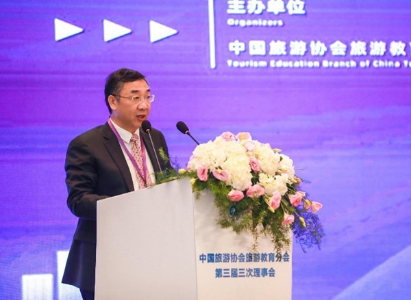 在召開的平行分論壇上,學院副院長卓德保主持了“一流專業建設:旅游教育的內涵式發展”分論壇;學院特聘教授樓嘉軍主持了“文旅融合:旅游教育的轉型與創新”分論壇。學院黃崎教授就智慧旅游的應用,現狀和發展新趨勢,進行了交流發言,他從高新技術:A I技術、大數據、尤其是區塊鏈技術在旅游業的運用等領域進行了分析。學院王培來副教授就“泛酒店產業的形成與產教融合實踐的思考”進行了交流發言,他從緣起、應對、思考三個角度分別闡釋了泛酒店產業的形成、專業課程體系的重構及產教融合的落地。學院教師的交流發言得到在場嘉賓的一致認同,并表達了開展合作交流,共同推動旅游教育高質量發展的愿景。